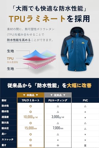 また、撥水性能の面でも注目されています。DIAMAGIC DIRECT®技術によって、50回の洗濯後でも接触角110度を維持することが実証されており、長期的に撥水効果を発揮します。このような高耐久性がありながら、価格は税込5,800円前後と、GORE-TEXなどの競合製品と比較して半額以下に抑えられている点も大きな魅力です。高機能かつ手に取りやすい価格帯という条件が揃っているため、コストパフォーマンスに優れた選択肢として評価されています。