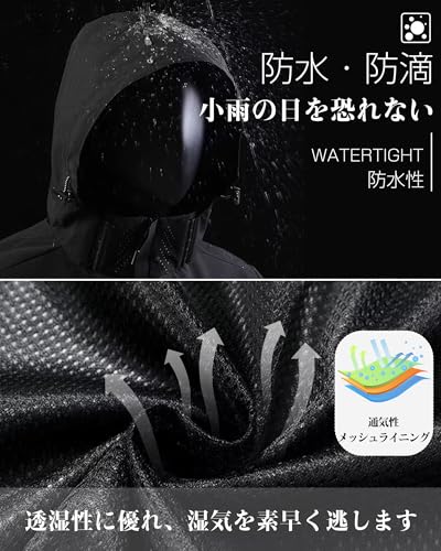 エックスシェルターに採用されている「超透放湿技術」は、雨天時でも快適に過ごすための大きな要素です。この技術は、外からの雨をしっかり防ぎながら、内側からの湿気を効率よく外に逃がす構造となっており、着用時の蒸れを大幅に軽減します。