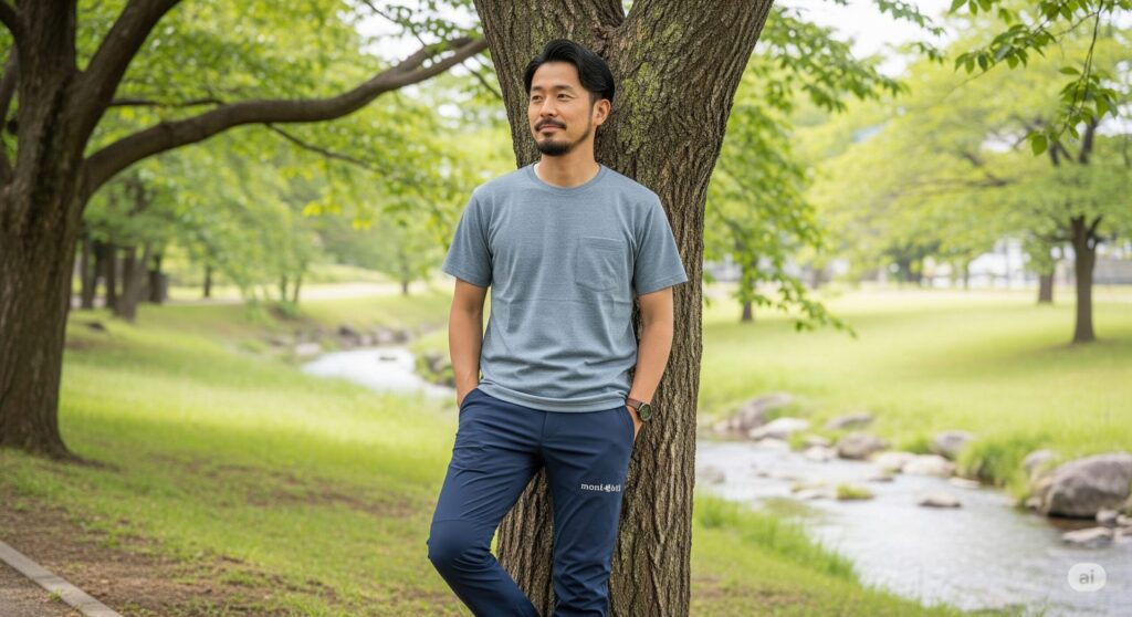 モンベルのパンツと聞くと、「山登りのための服」というイメージが強いかもしれません。しかし、実はその優れた機能性と洗練されたシンプルなデザインから、街着としても非常に優秀なアイテムです。