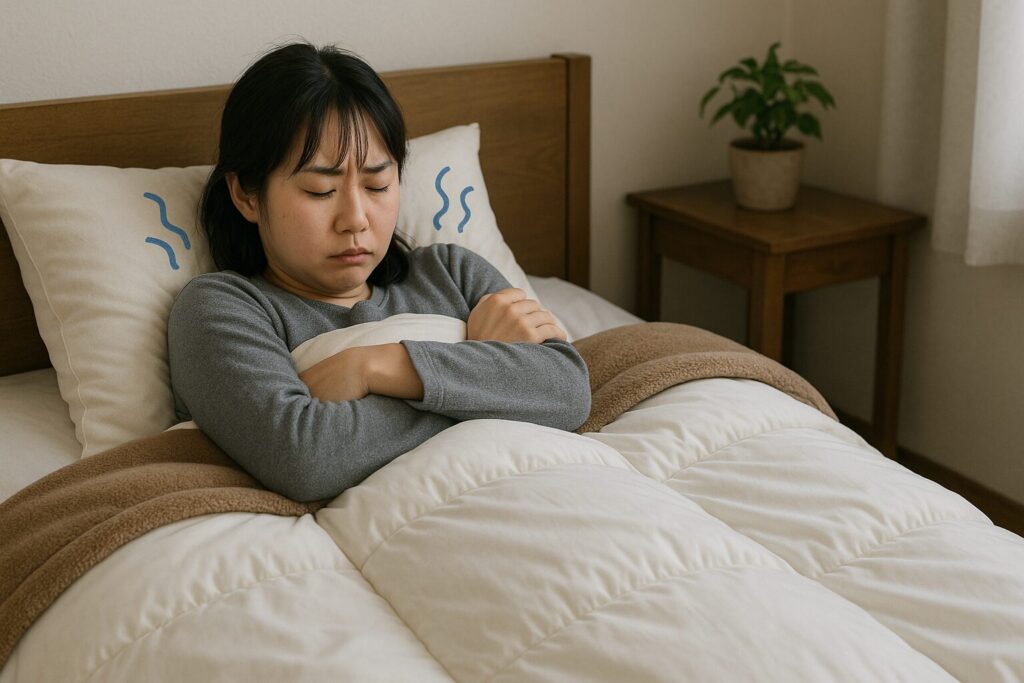 この状態でエアロゲル布団を使うと、どうしても湿気の逃げ場が少なくなり、「朝起きるとなんだかベタっとしている」「夜中に暑くて布団をはいでしまう」といった感想に繋がりやすくなります。