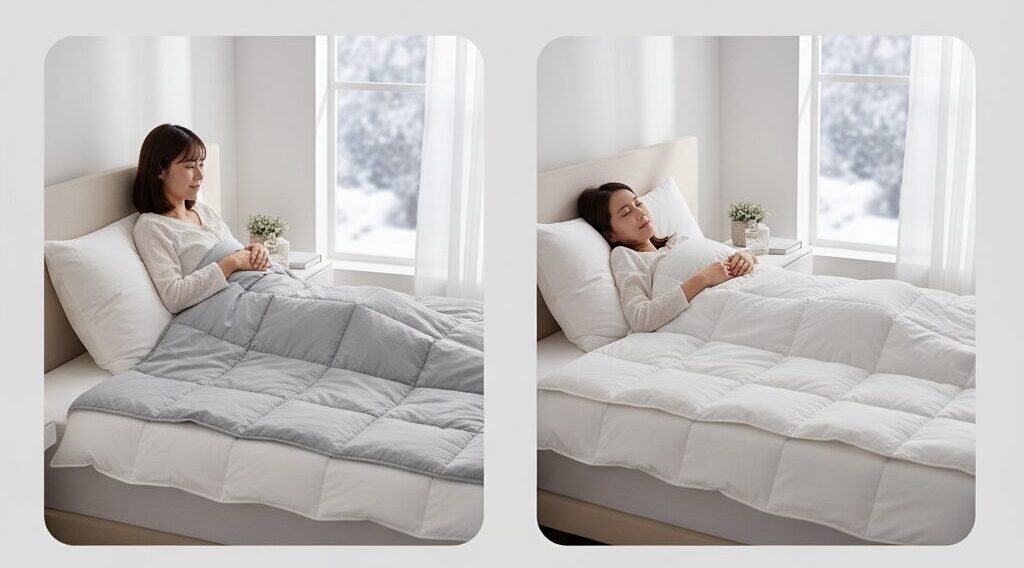 エアロゲル素材を使用した寝具には「毛布(ブランケット)」タイプと、「掛け布団」タイプがあります。この二つは厚みや想定される用途が明確に異なります。