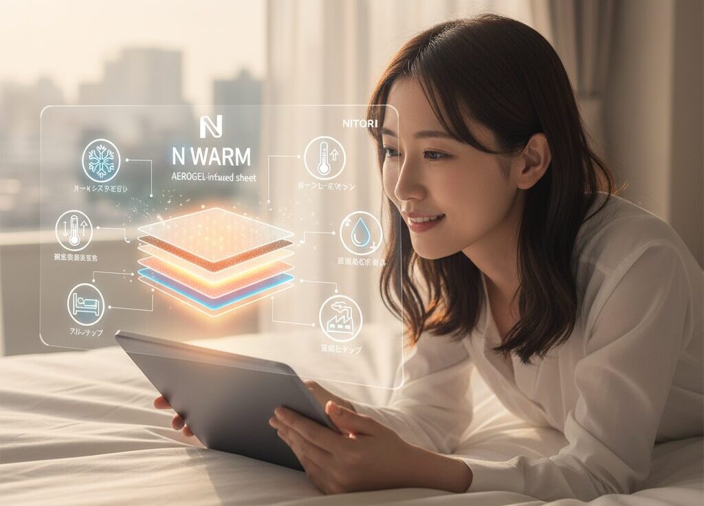 「エアロゲル毛布をニトリで探している」という方は非常に多いようです。2025年度モデルにおいて、ニトリは「Nウォーム」シリーズの最上位モデル「Nウォームダブルスーパー」に、先進素材としてエアロゲルを配合したことを発表しました。(参照:PR TIMES 2025年10月8日発表情報)