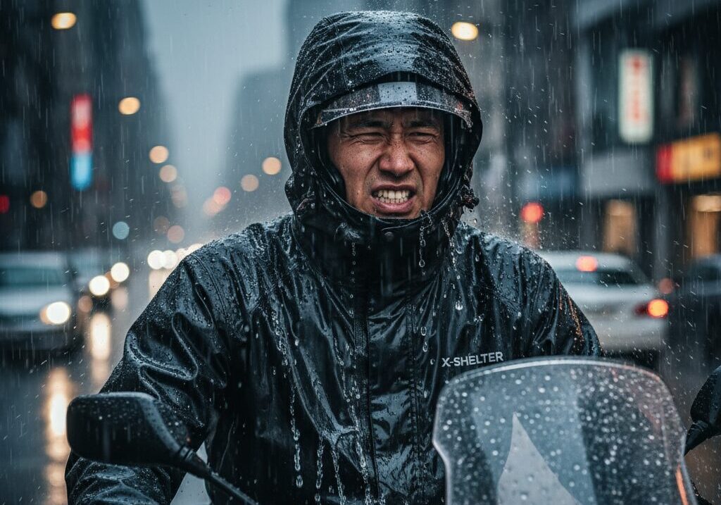 ここが一番の注意点かもしれません。エックスシェルターは高い耐水圧を誇りますが、一部のモデル、特に「超透放湿レインジャケット」などは、豪雨や長時間の雨では浸水する可能性があるようです。
