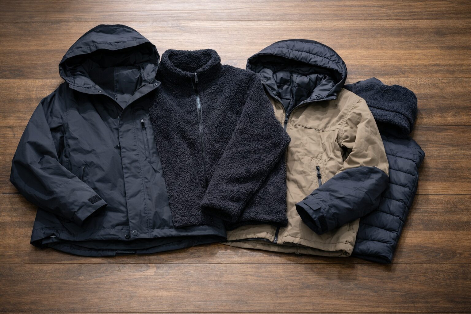 全部純正で揃えると費用がかさむので、最初は手持ちのフリースで試して「自分が寒いのはどの気温帯か」を掴むのもアリです。そこから、真冬の寒さが足りないならダウンを足す、屋内が暑いなら薄手フリースに寄せる、という感じで最適化していくと、無駄が減ります。