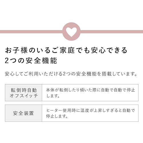 - ポイント:広い範囲を効率的に暖め、セーフティ機能付き