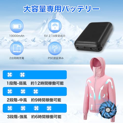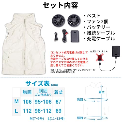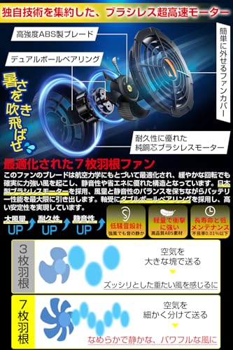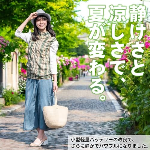 現在の市場では、風量を数段階に調節できるファンを搭載したモデルや、左右両側にファンを備えた2ファンタイプ、さらには背中部分にもファンが付いている3ファンタイプなどがあり、選択肢が非常に広がっています。これにより、空気の流れが均等に保たれ、首元や背中、脇など体全体に風を感じることができます。