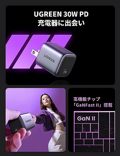 UGREEN Nexode 45Wは、45Wの出力を持つコンパクトな充電器です。2つのUSB-Cポートを備えており、スマートフォンやタブレットを同時に充電できます。この充電器は、小型で持ち運びやすく、旅行や出張に最適です。また、GaN技術を採用しているため、効率的に電力を供給し、発熱を抑えます。