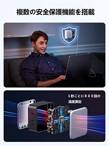 Anker 747 Charger (GaNPrime 150W)は、150Wの出力を持つ高性能な充電器です。3つのUSB-Cポートと1つのUSB-Aポートを備えており、ノートパソコンやスマートフォン、タブレットを同時に充電することができます。この充電器は、非常にパワフルで、多くのデバイスを同時に充電したい方に最適です。