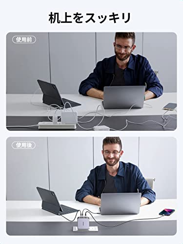 UGREEN Nexode 100W 4ポート充電器は、4つのUSBポートを備えた高性能な充電器です。最大100Wの出力に対応し、ノートパソコンやタブレット、スマートフォンを同時に充電できます。この充電器の特徴は、その多機能性とコンパクトなデザインです。デスクの上でも邪魔にならず、使い勝手の良い製品です。