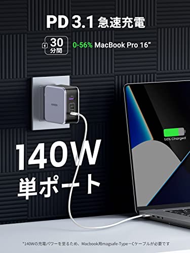 UGREEN Nexode 140Wは、140Wの出力を持つ充電器で、2つのUSB-Cポートと1つのUSB-Aポートを備えています。この充電器は、非常に高出力で、ノートパソコンやタブレット、スマートフォンを同時に急速充電することができます。また、コンパクトで持ち運びにも便利です。